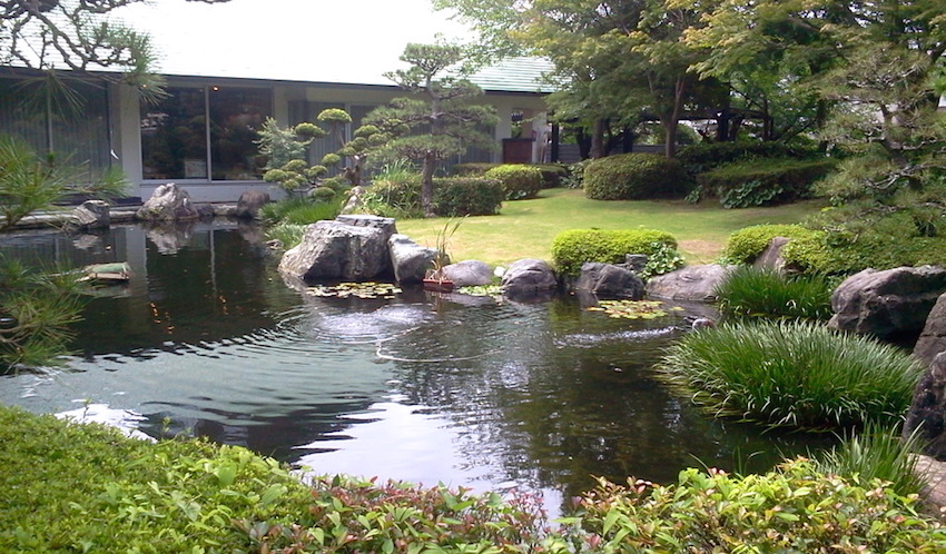「新居図書館庭園」(あらいとしょかんていえん)は静岡県湖西市立の図書館に地元静岡県西部出身の造園家・中根金作により作庭された庭園。