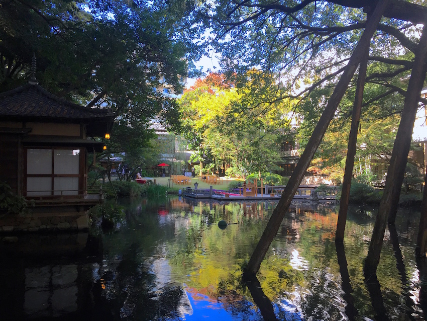 昭和の戦災や区画整理で現在の庭園は作庭当時と比べだいぶ小さくなっているようですが(あと近年、池の上に舞台が配されたので――庭園目線で見ると少し景観的にマイナス)、現在も慶喜公お手植えの台湾竹や小松宮彰仁親王から贈られたとされる灯籠などが残ります。また池のほとりに建つ「子福稲荷神社」も江戸時代からあったものとのこと。