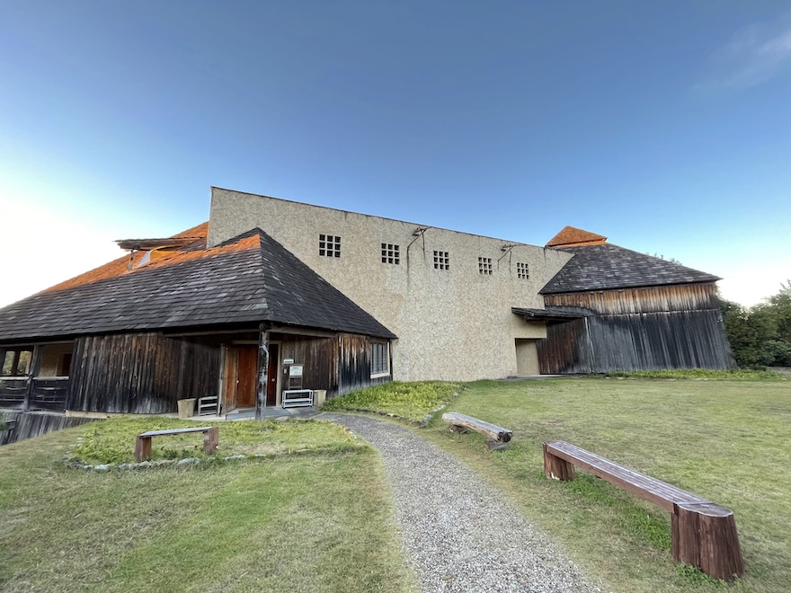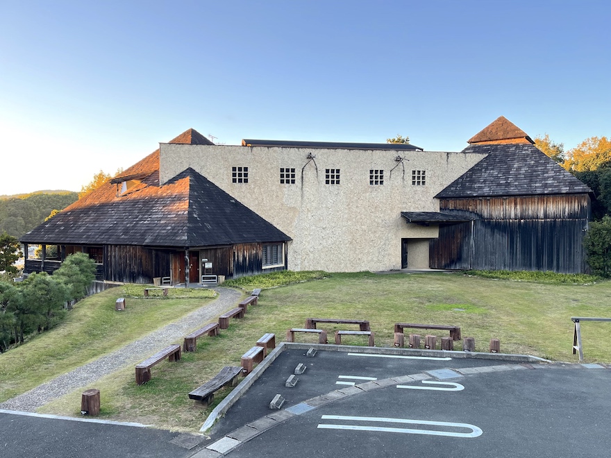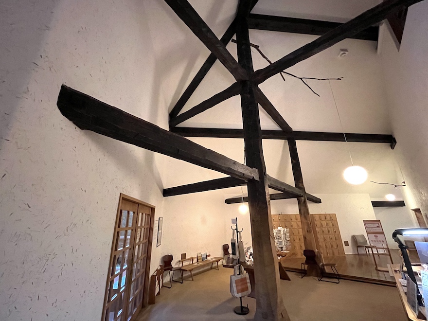 コンクリートの基礎部分?も外は杉が張り巡らされ、空中へせり出されているような姿は懸造の寺院建築のようでもあるし、古民家のような梁がある内装や白亜の展示室も◎。