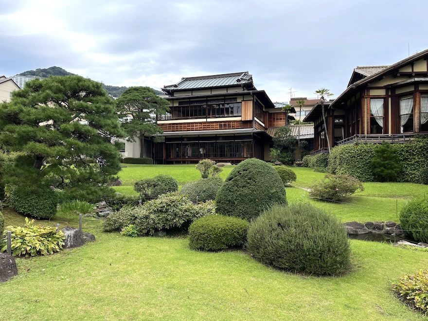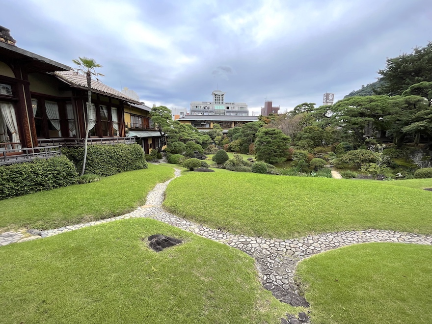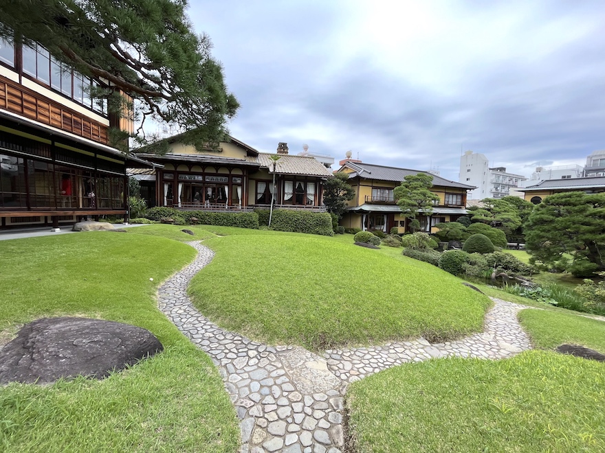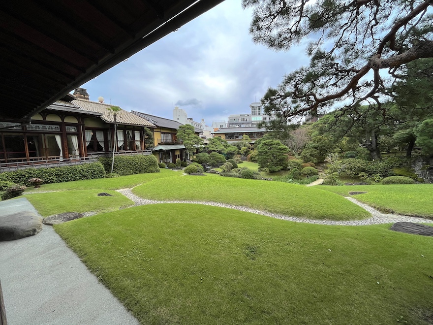 初めて訪れた頃は「日本庭園だ〜芝生〜★」ぐらいに思っていたけれど。近いところでは七代目小川治兵衛の『三養荘庭園』、同じく小川治兵衛の『慶雲館庭園』、東京の『大隈庭園』等と似た雰囲気の、当時の流行した作風の庭園だったと感じられます。洋館やステンドグラス目当てに訪れる観光客・建築ファンにも気に入ってもらいたい庭園!