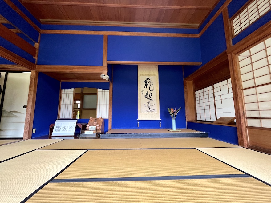 そしてなにより目を引くのが群青色に塗られた独特の壁面。これは旅館時代に当時のオーナー・桜井兵五郎が地元・石川県の“加賀の青漆喰”を取り入れたもの。そういえば金沢の『辻家庭園』や粟津温泉の『法師旅館』でもこの青漆喰があったなぁ。