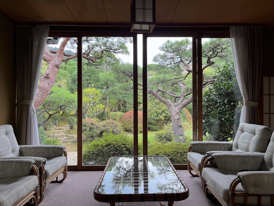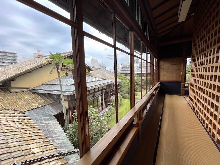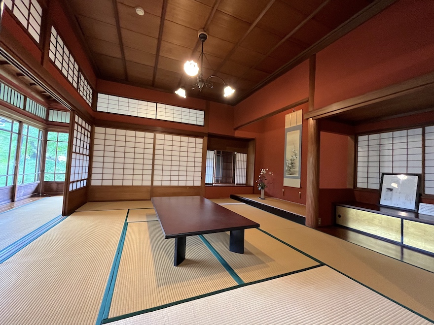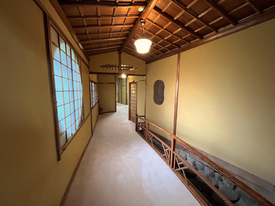 最後に、各洋館と庭園を挟んで向かいにあるのが和館「孔雀」。現在は独立した離れのような形になっているけれど、時代的には「麒麟・大鳳」とともに大正時代に建てられたもの。孔雀はここまで見た各部屋と比べるとシンプルな和館といった趣き…。そのほか旅館時代に増築された「音楽サロン(旧・宴会場)」など、おおよそ10棟で起雲閣の建築は構成されます。一番新しいのは平成年代の貸出ギャラリー。