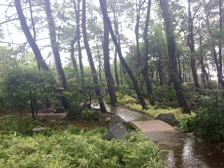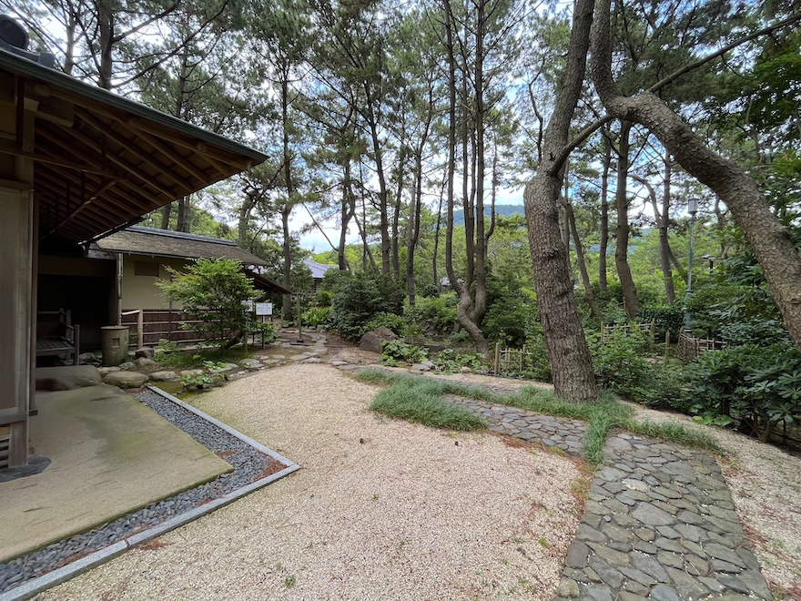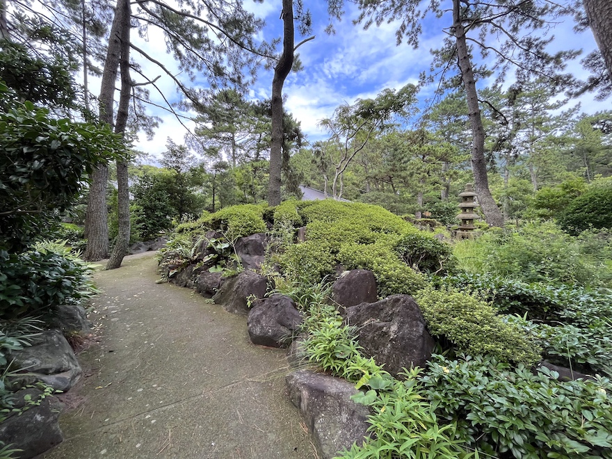 この周辺の露地庭園が沼津御用邸記念公園の中で最も「日本庭園っぽい」エリアで、翠松亭の前からの沼津アルプスの山々の借景も美しい!設計は京都・空間創研。