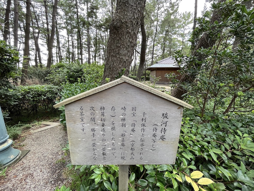 その一角にある茶室が“翠松亭”と“駿河待庵”。これらは公園になった後、平成年代に新たに建立されたもので、“駿河待庵”はその名前の通り千利休による京都・大山崎の国宝茶室“待庵”の写し。