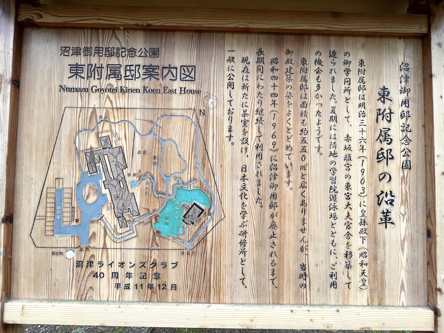 その歴史について。1893年(明治26年)に当時皇太子だった大正天皇のご静養のために造営が開始。駿河湾に面し富士山も望むこの地は景色も良く気候も温暖で、先に西郷従道/大山巌/川村純義といった陸海軍の大臣の別荘が建てられていたそう。川村純義は後に昭和天皇の養育係もつとめました。