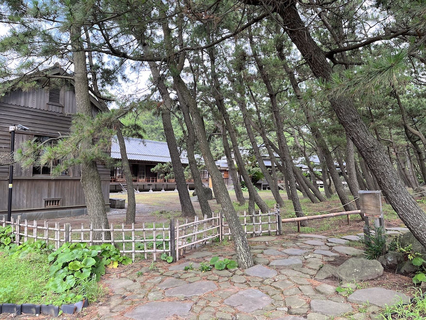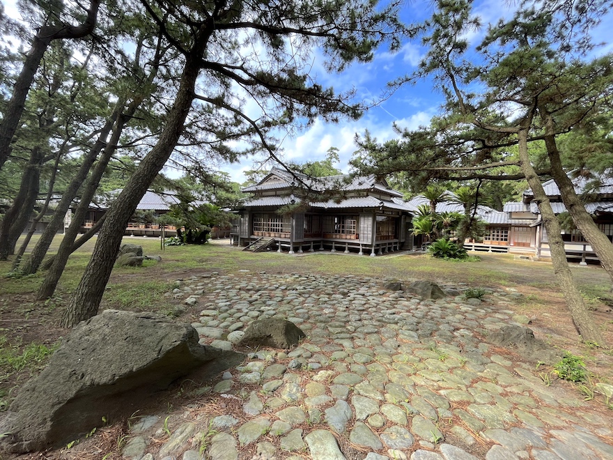 景勝地としても知られた“千本松原”の中を縫うように造営された沼津御用邸。現在見学できる「西附属邸」と「東附属邸」の間にも広大な園地が広がりますが(その中に『沼津市歴史民俗資料館』も)、元はこのスペースに一番最初に建築された「本邸」が存在しました。