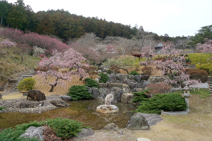 「花の奥山高原」(はなのおくやまこうげん)は遠州/静岡県西部を代表する寺院『奥山方広寺』の西方、愛知県と面する富幕山の中腹に広がる観光植物園。初春(2月下旬〜3月上旬)に開花するしだれ梅の名所『しだれ梅流水庭園』があります。