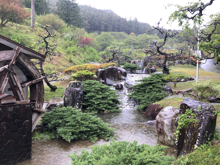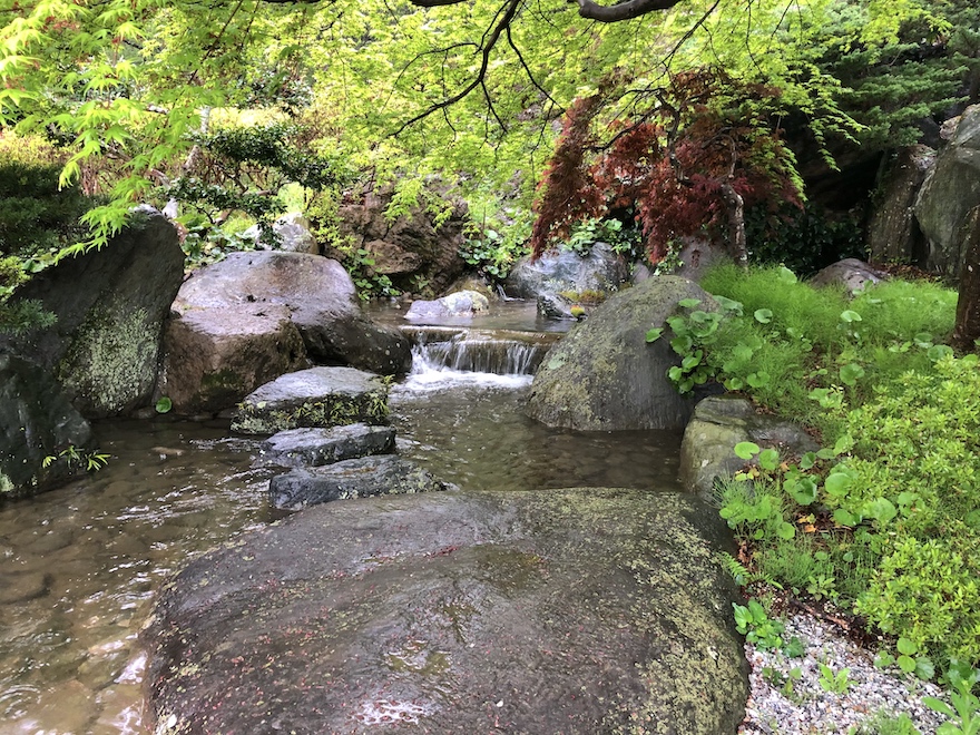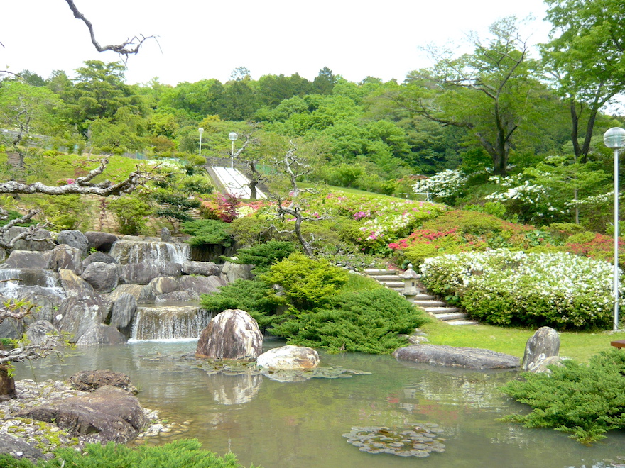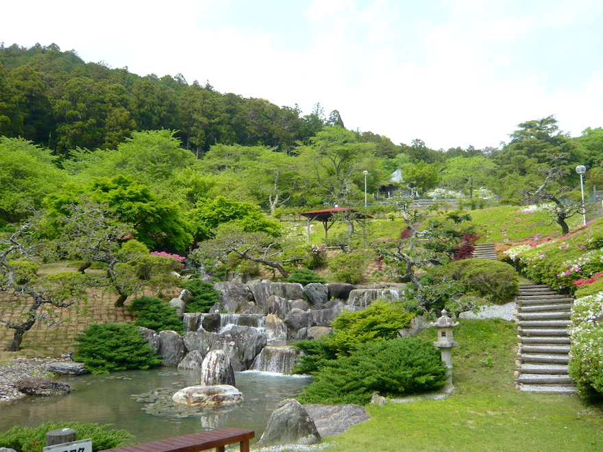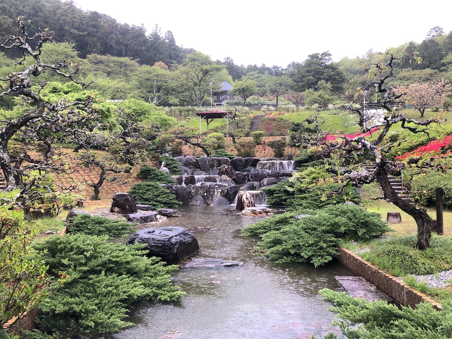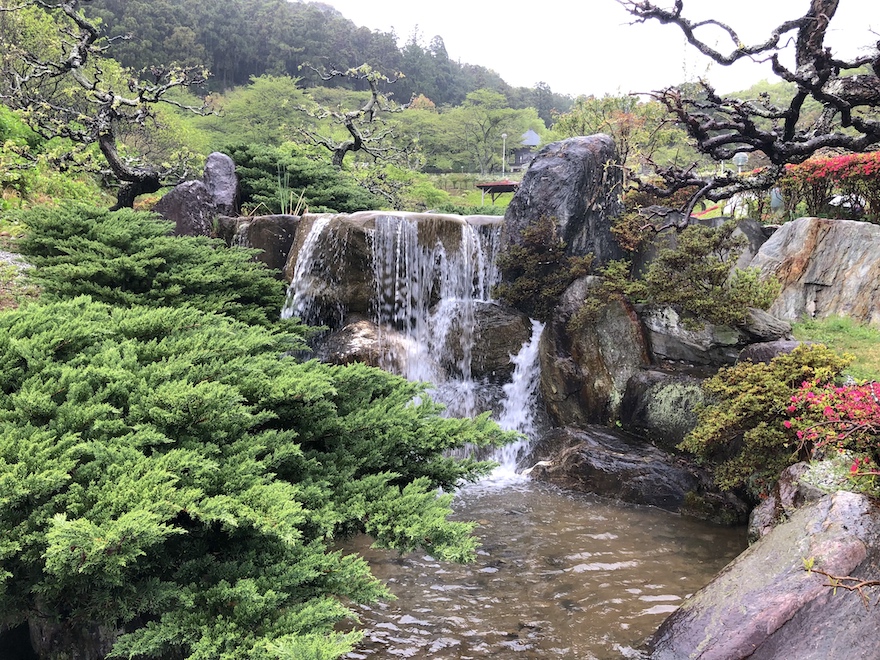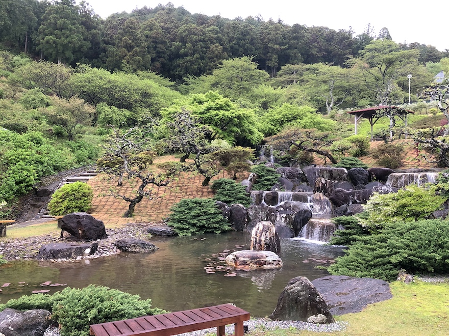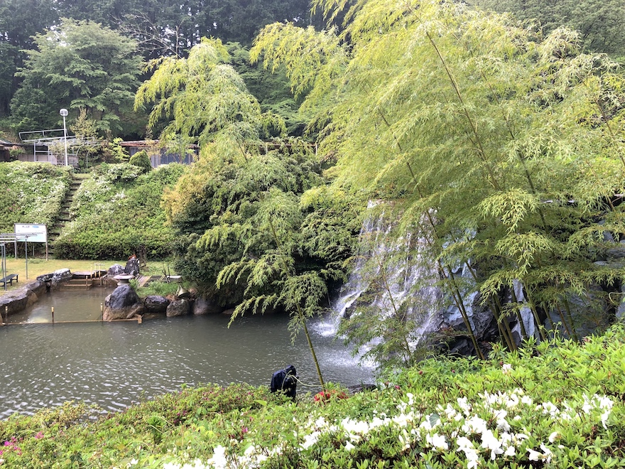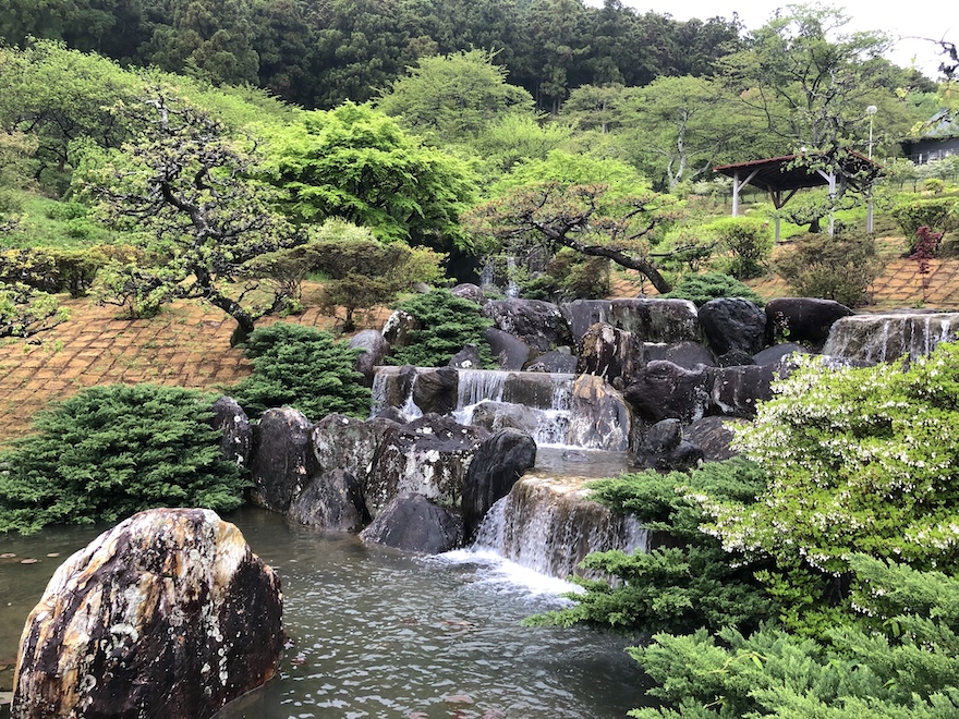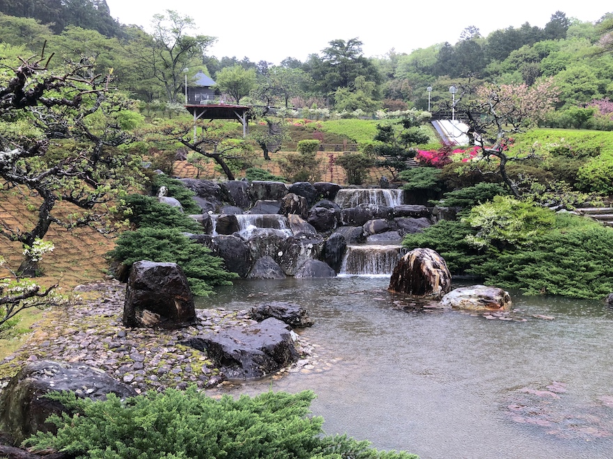台湾から輸入された巨石による約30mにも渡る“七段の滝”の原型は昭和の開園当時に造園されたもの。その際に施工を手がけたのは浜松では大手の造園会社・天龍造園建設さん。当時の社長・稲勝氏は浜松・遠州地方の人なら知らない人は居ないレジェンド「金原明善」の流れを汲むとか。