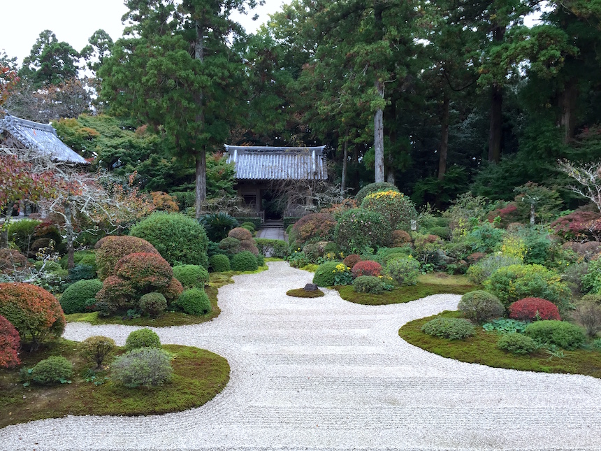 まず本堂前に広がる枯山水庭園“補陀落の庭”は平成年代に作庭された比較的新しいお庭。作庭に至ったエピソードがちょっと面白かったのですが――今言われてみると門をくぐって真正面に本堂があるのに、枯山水庭園で遮られてるのは後世の変化なんだな、と。