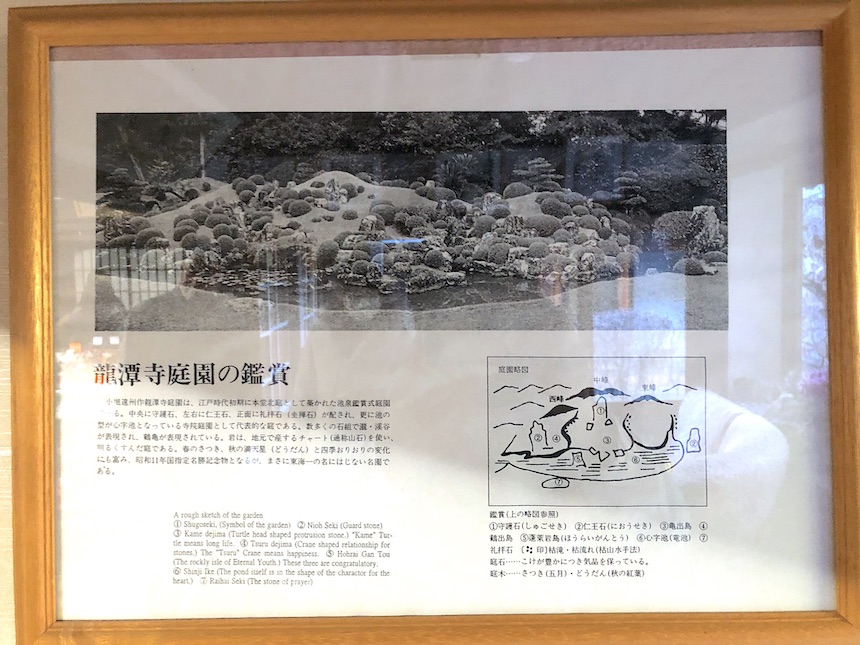 上手側にある書院は江戸時代末期に大老をつとめた井伊直弼が井伊家の菩提寺であるこの龍潭寺に訪れるに伴い増築されたもので、井伊直弼は書院から庭園とその先にある井伊家代々の祀られた「井伊家御霊屋」を眺めたそう。