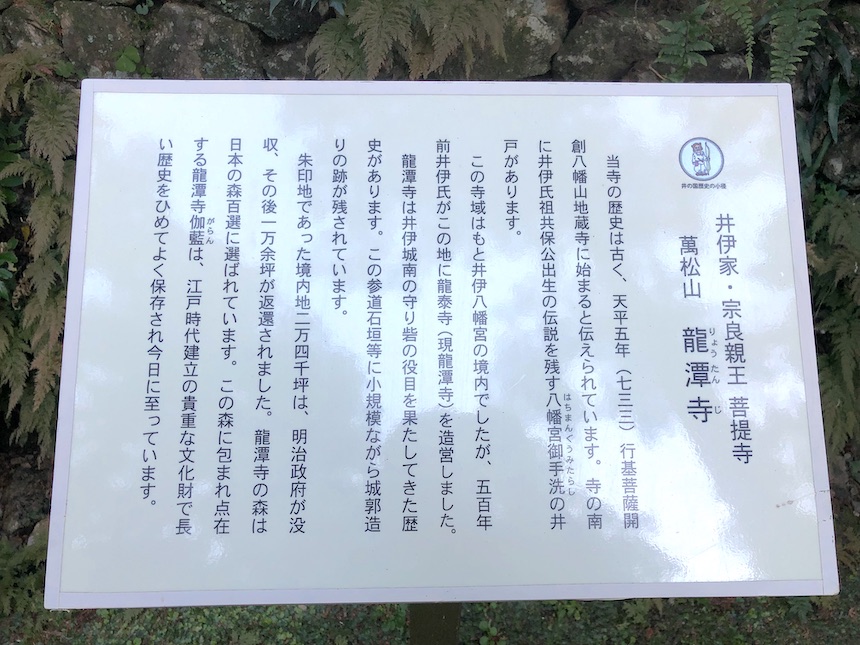 正式名称は「萬松山 龍潭禅寺」という臨済宗妙心寺派のお寺。その歴史は古く奈良時代の733年、行基によってその前身“地蔵寺”が開かれたとされます。“龍潭寺”という寺名となったのは戦国時代、桶狭間の戦いで亡くなった井伊直盛の法名にちなんだもの。