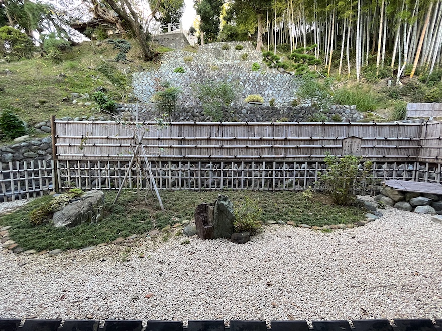 マツだけでなく5年前の庭園の姿と見比べると、今回は庭園全体がかなりすっきりと明るくなっていることがわかる。樹木が育ち過ぎて日が当たりにくくなっていたことや、近年頻発する豪雨による土砂崩れの対策・予防が進んでいるのかも。