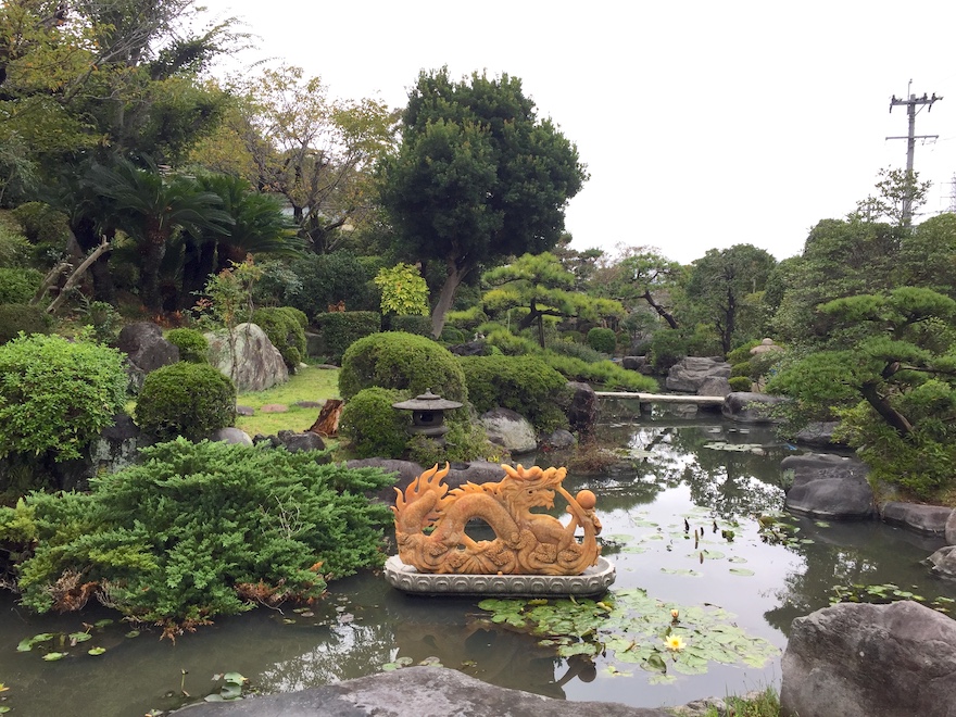 で、境内の低地部にも日本庭園があり、こちらは“龍潜園”という現代の池泉回遊式庭園。池の周囲では睡蓮のほか季節季節の花々を見ることができます。拝観受付には“寺cafe”も併設。庭園・寺社仏閣好きも、サッカーのサポーターの方もぜひ立ち寄ってみて。