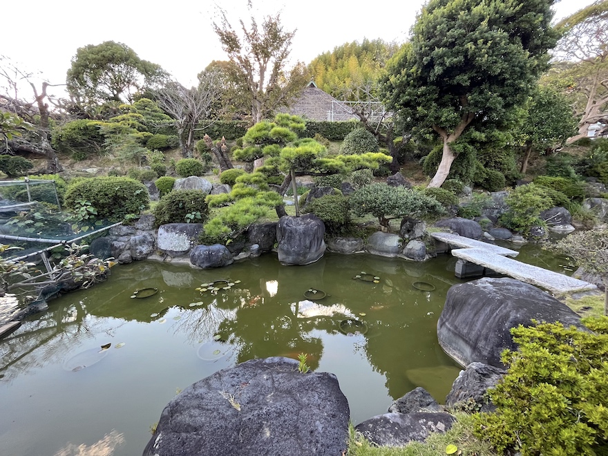 池に架かる石橋は東山天皇の“行幸橋”と伝わり、その歴史から静岡市の指定文化財(静岡市指定名勝)にも選定。かつては“東海屈指の名園”と呼ばれたとか…。(現代はそこまでの知名度ではないかもだけど)