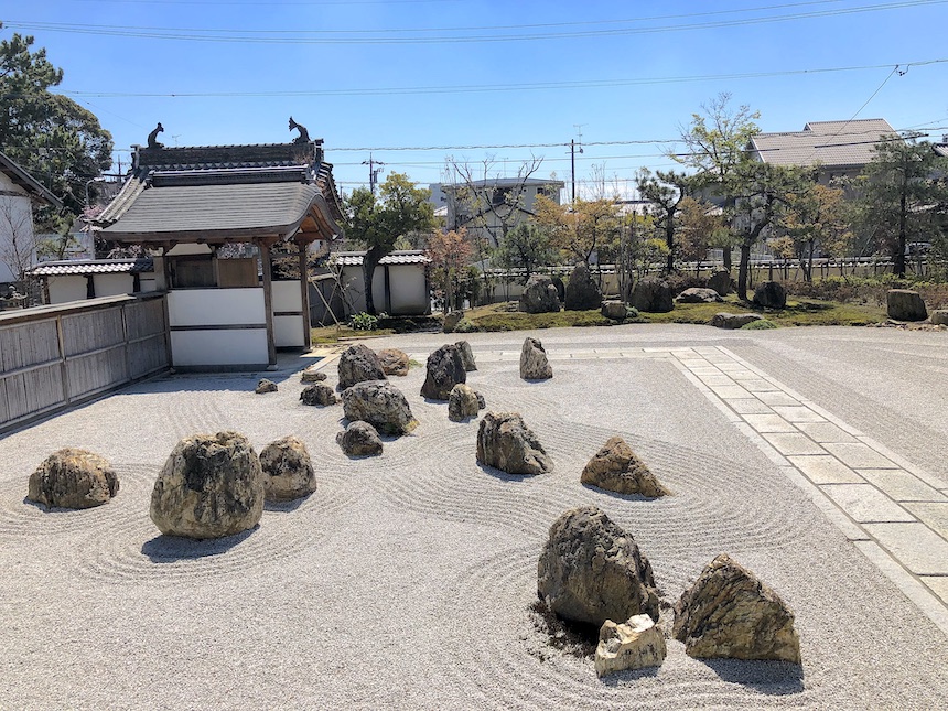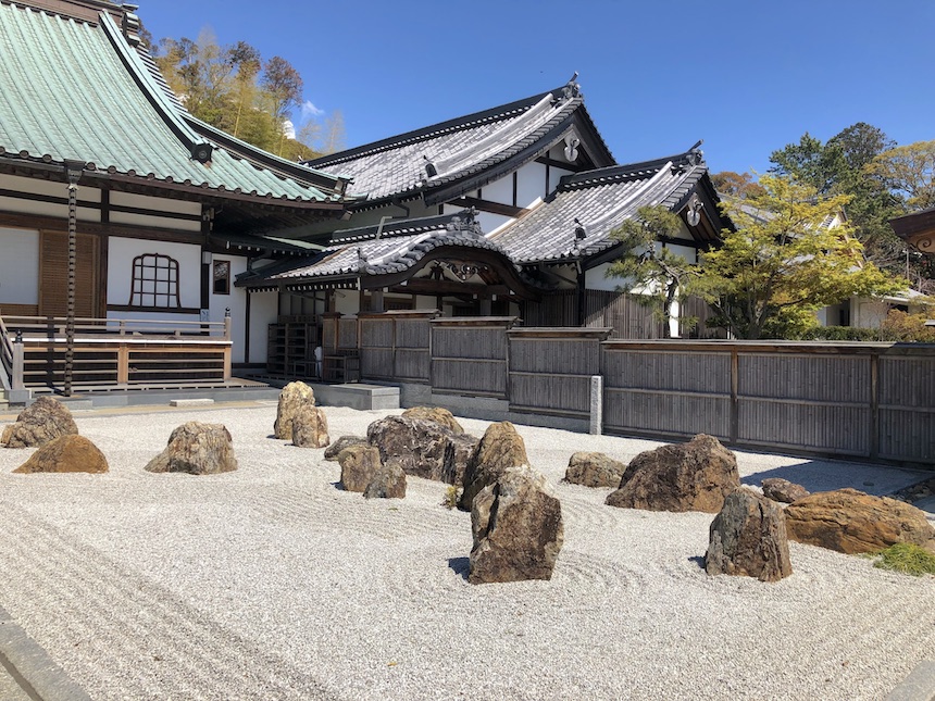 その白砂は大海が表されているので、参拝者はその海の中を渡って本堂へ至る、といった形になりますが、これも“入ってみたくなる庭園/お寺”になるような演出。三尊石や龍には京都から運んできた石が用いられ、一方で亀には地元・天竜川沿いの青石が用いられているそう。