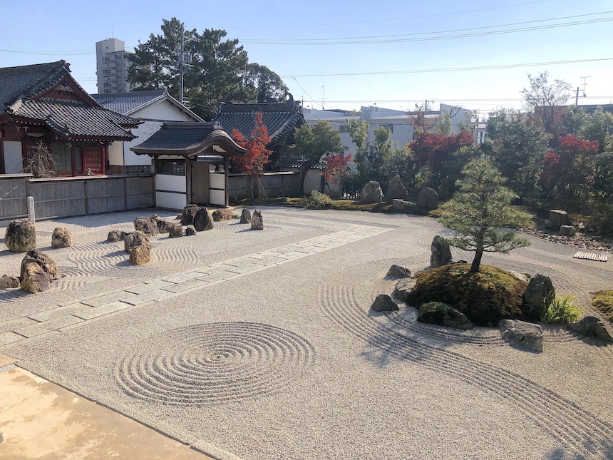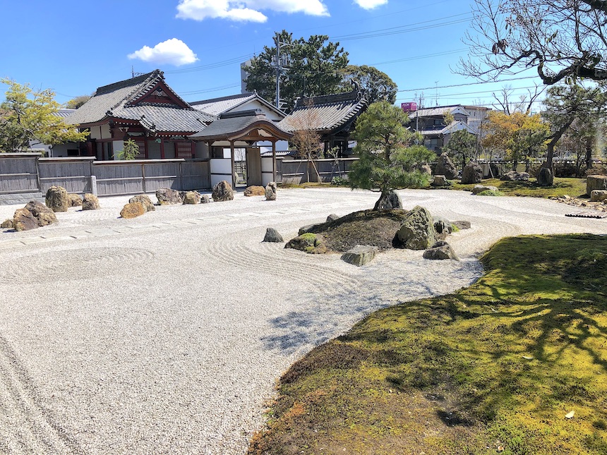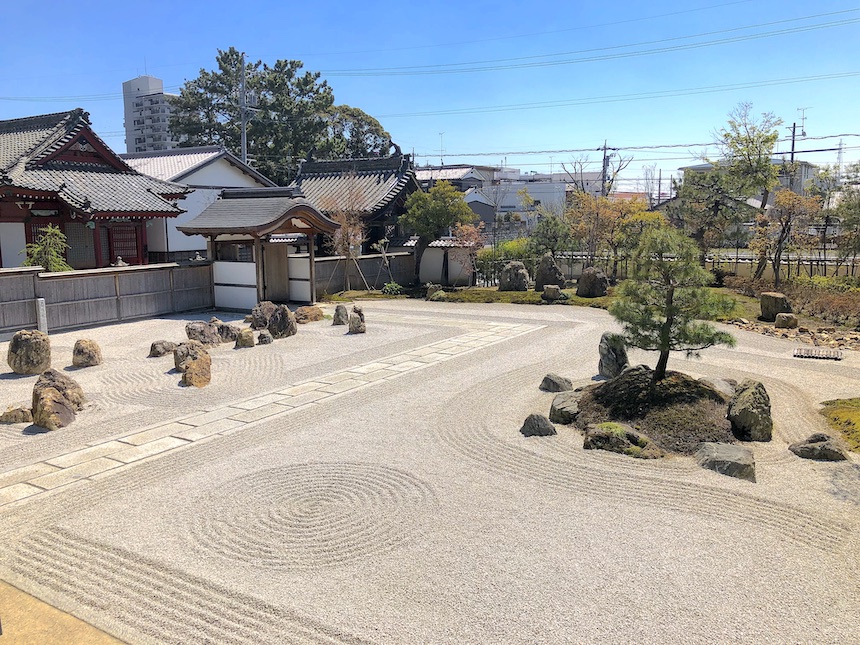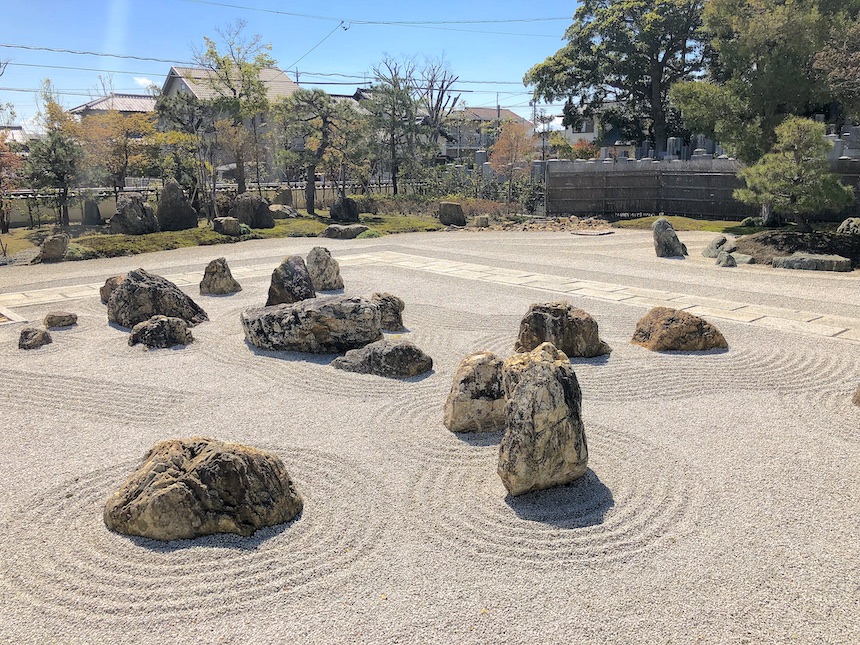 現代京都の代表的作庭家・北山安夫による枯山水庭園“無量寿庭”と大滝を持つ“清浄庭”。天才書家・金澤翔子の“世界一大きい般若心経”も。