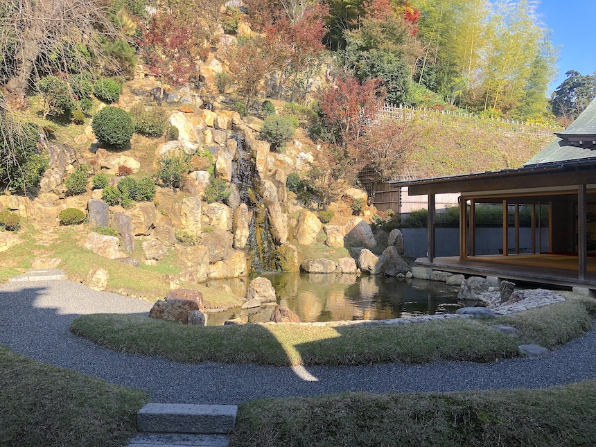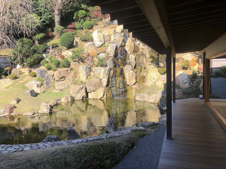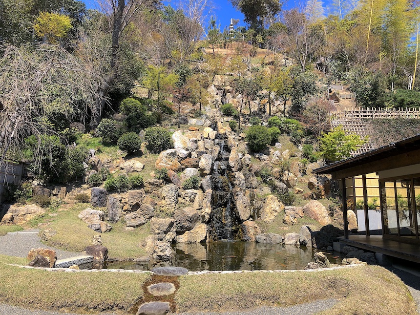 京都には主に枯山水庭園を手掛けている北山さんにとって(国内では?)最大の滝を持つ庭園で、その作庭中には大きな怪我も…。まさに命と向き合いながら、その精神性も込められ完成した日本庭園。一方で佐鳴湖からの立地や湧水による滝ということで、この池に登場するサワガニが子供には人気なのだとか…。