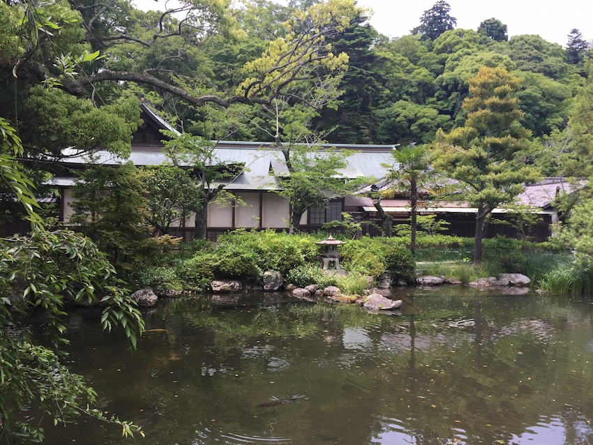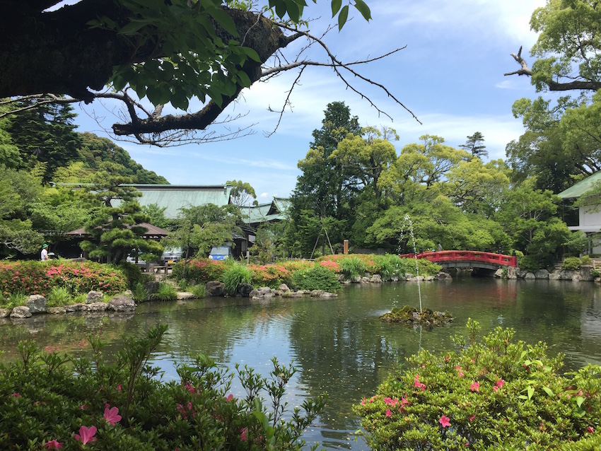 「静岡」の地名の由来でもある賎機山の麓(静岡の市街地)にある神社。その歴史は古く2000年以上の歴史を誇り、江戸時代後期に建立された社殿などが国の重要文化財にも指定。その境内にある池泉回遊式庭園。