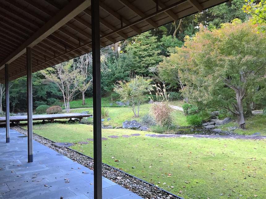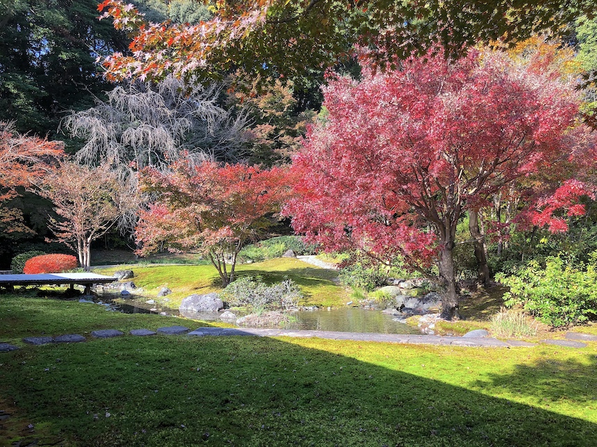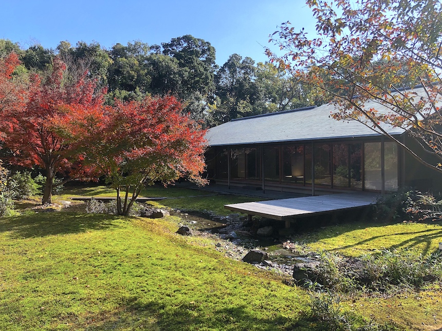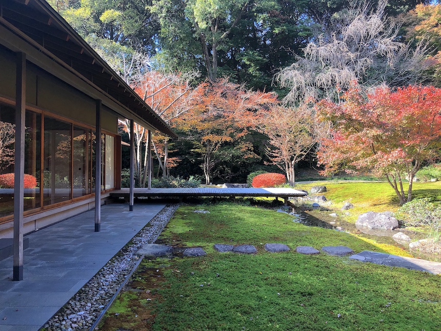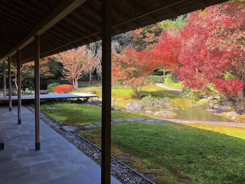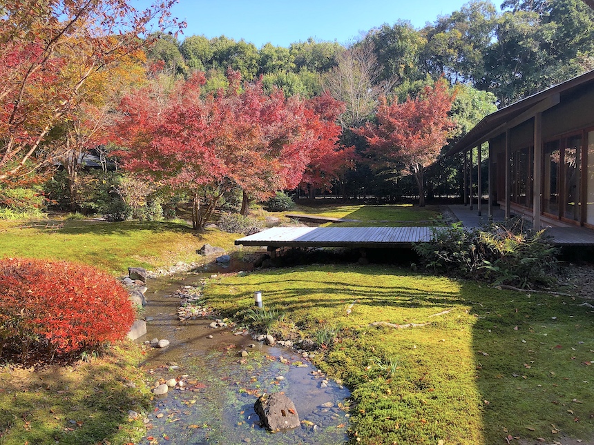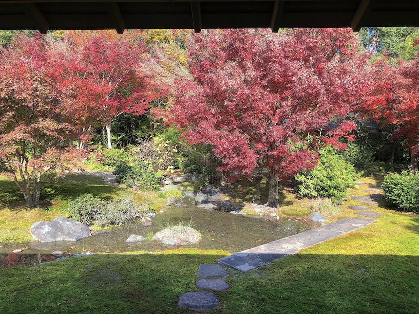 そして今回訪れたのは4回目、初めて訪れてから約8年。最初は芝生のお庭だったけど、今では苔の広がるお庭になっている(今回は紅葉もピーク!)。庭園は立礼席での呈茶(400円)ののち回遊することができます。