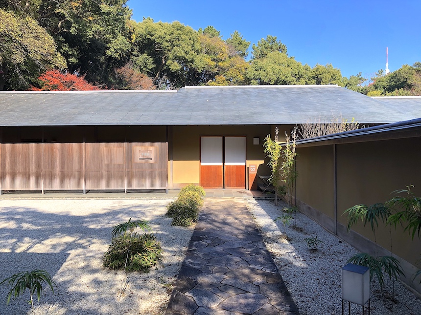 今回気づいたのは、主棟の立礼席の天井の照明が谷口吉生さんの父・谷口吉郎の手掛けた『赤坂離宮 和風別館“游心亭”』と同じ(オマージュ)になっていること。もっと言うと、美術館など大型建築が多くかつ合理的なフレーミングが美しい作風の氏において、小規模な和風建築である松韻亭ってめっちゃくちゃ貴重じゃない……?(*松韻亭を手がける2年前に同じく水澤工務店と『豊田市美術館』の茶室“童子苑”は手掛けられている)