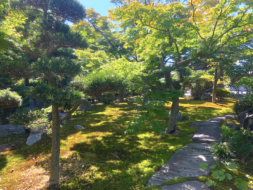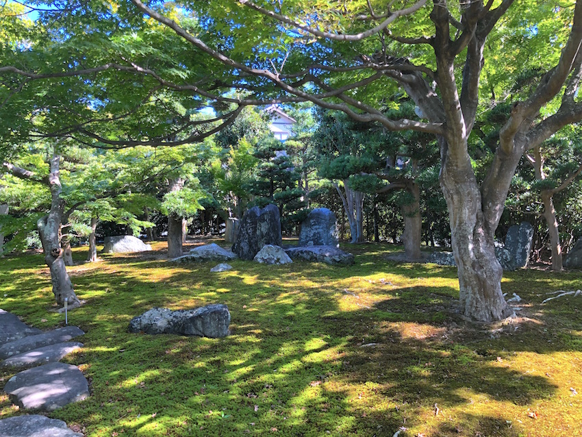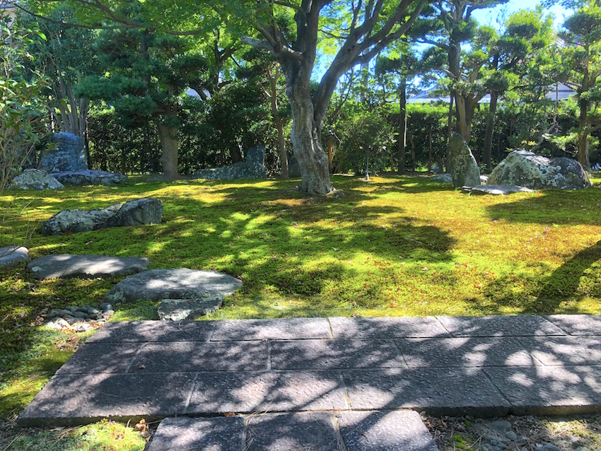 重森三玲に師事した作庭家・斎藤忠一さんが携わった、浜松の市街地らしからぬ苔の美しい枯山水庭園。