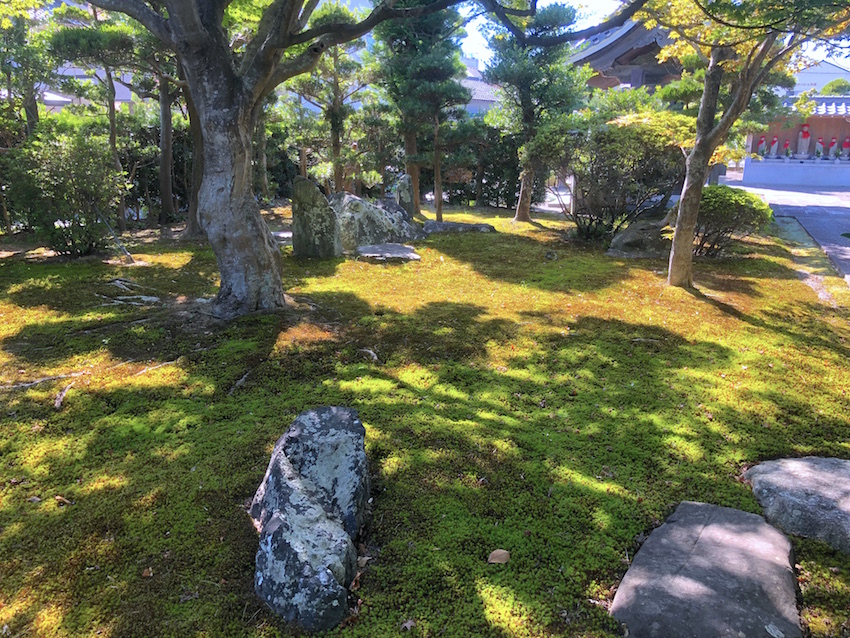 山門入って右手にある苔とイロハモミジと枯山水庭園はこれまで浜松で見たことがないタイプの庭園。浜松にこんな苔庭があったとは…!実際境内にある庭園のどこまでの範囲が斎藤忠一さんが手掛けているのかはわからないのですが(本楽寺と比べて、師匠・重森三玲さんから受け継いだ作風――という感じではあまり無い)、使われている石材、これは浜松で採れたものなのかな…なんかあまり浜松で暮らしてて見る機会が無い石な気がする。