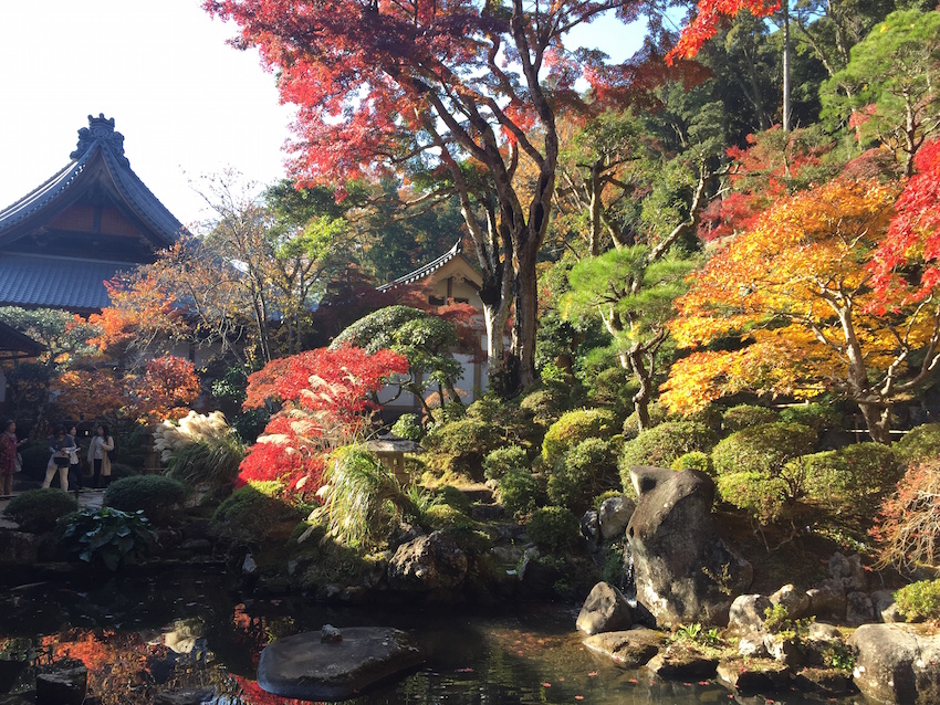 源氏ゆかりの寺院に造られた池泉回遊式庭園は、大正天皇が「東海第一園」と仰せになったとも。紅葉の名所。