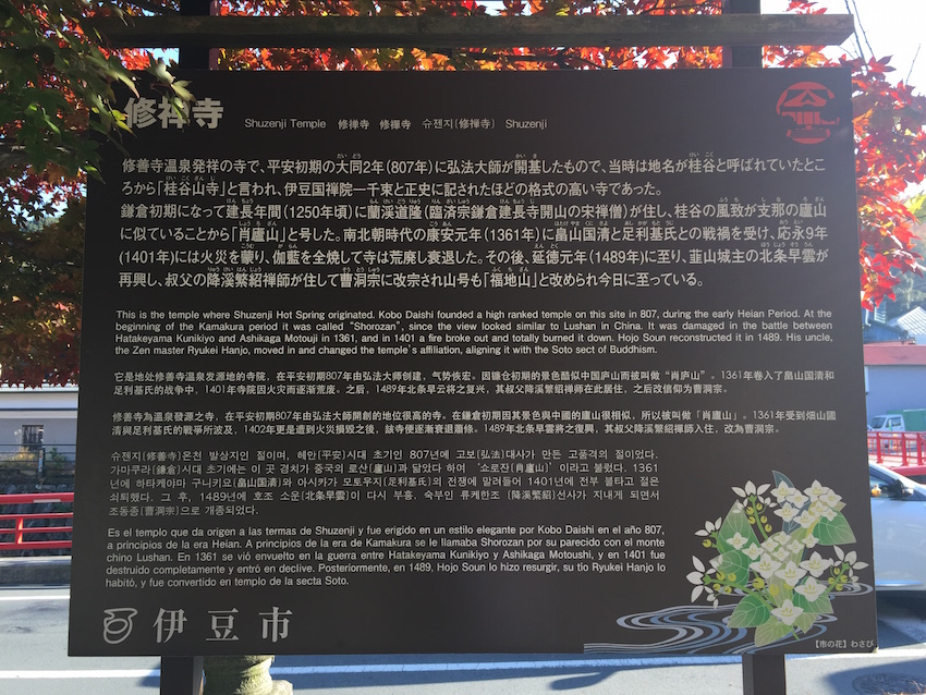 「修禅寺」(しゅぜんじ)は伊豆の温泉地・修善寺の中心にある、修善寺の地名の由来である寺院。近年、秋の紅葉時期に1〜2週間程度庭園の特別公開が行われています。