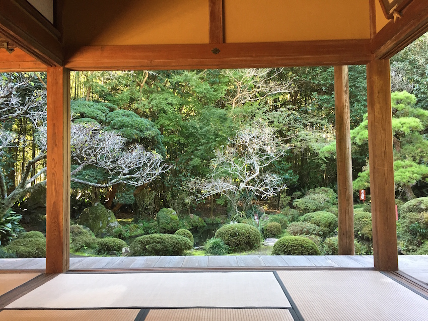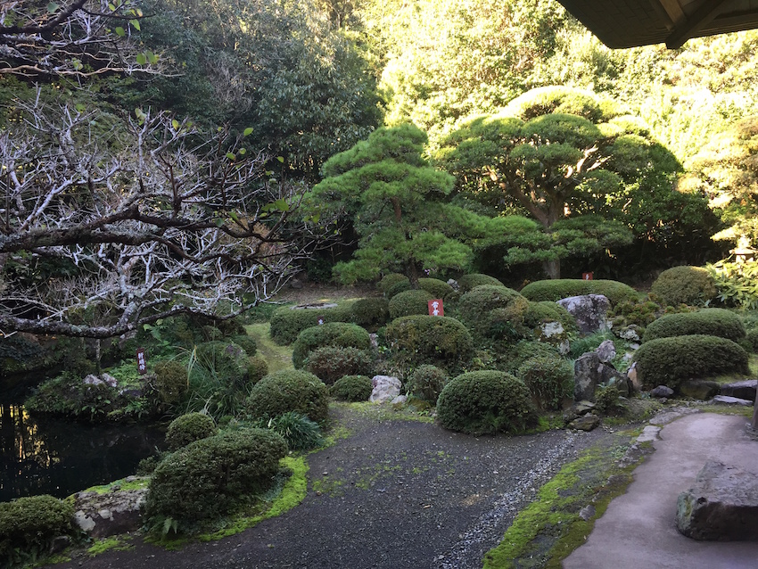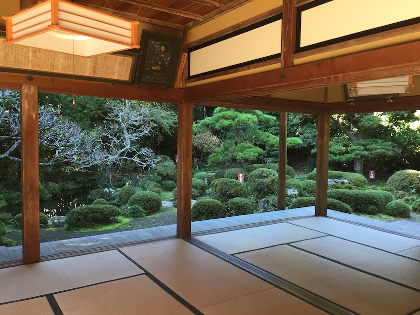 国指定名勝。柴屋寺は駿府を治めていた今川氏ゆかりの寺院で東海道の宿場町「丸子宿」の近く。庭園は江戸時代、徳川家康が茶会をやる為に作られたものだそう。