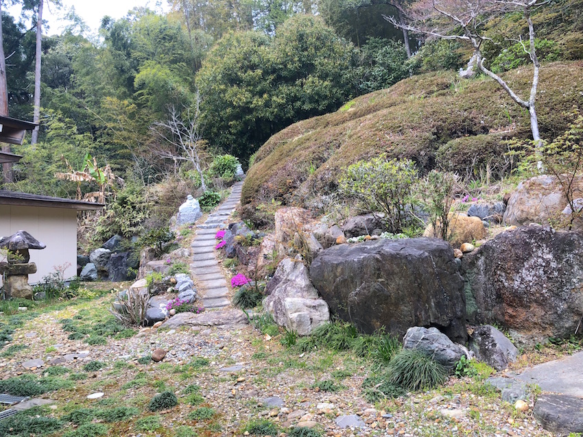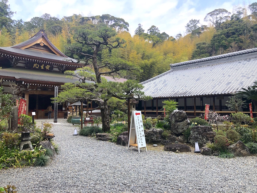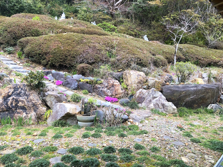 先の書院の前に“竹林の七賢人”という枯山水庭園、方丈と宝生殿の間に斜面を活かした“薬師稚児曼荼羅之庭園”があります。いずれも作庭年代などの説明はなく詳細は不明ですが、雰囲気的には現代に作庭されたものかな…。前者の庭園は土が堆積していてあまり美しい状態ではなく、後者は斜面のツツジ・サツキの見頃にはまだ早かった…もう少し後の季節に来ればもっときれいかも。境内は紅葉時期に美しいそうなので、まだ時期を改めて訪れたい!